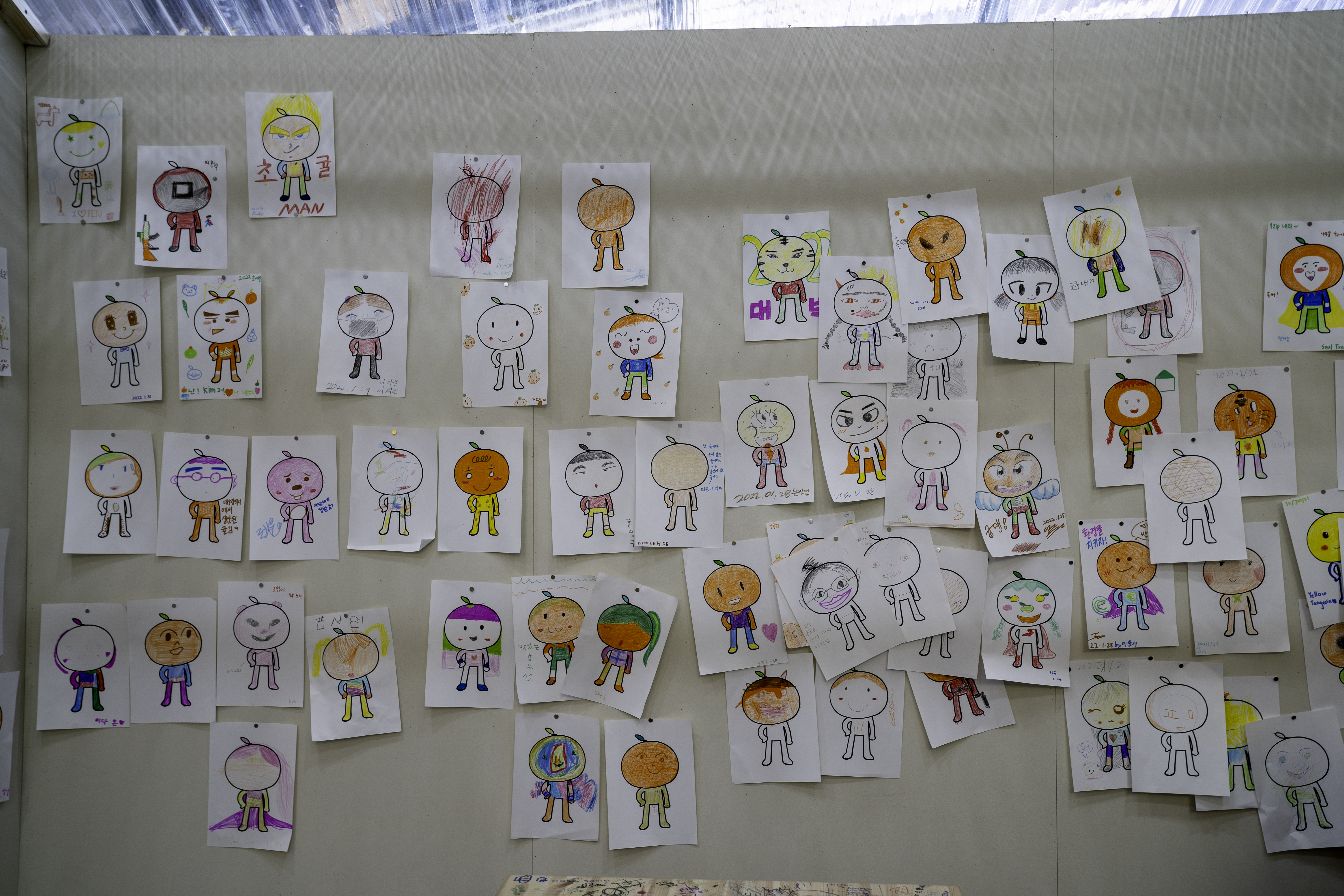 아이들이 그린 귤들입니다.
