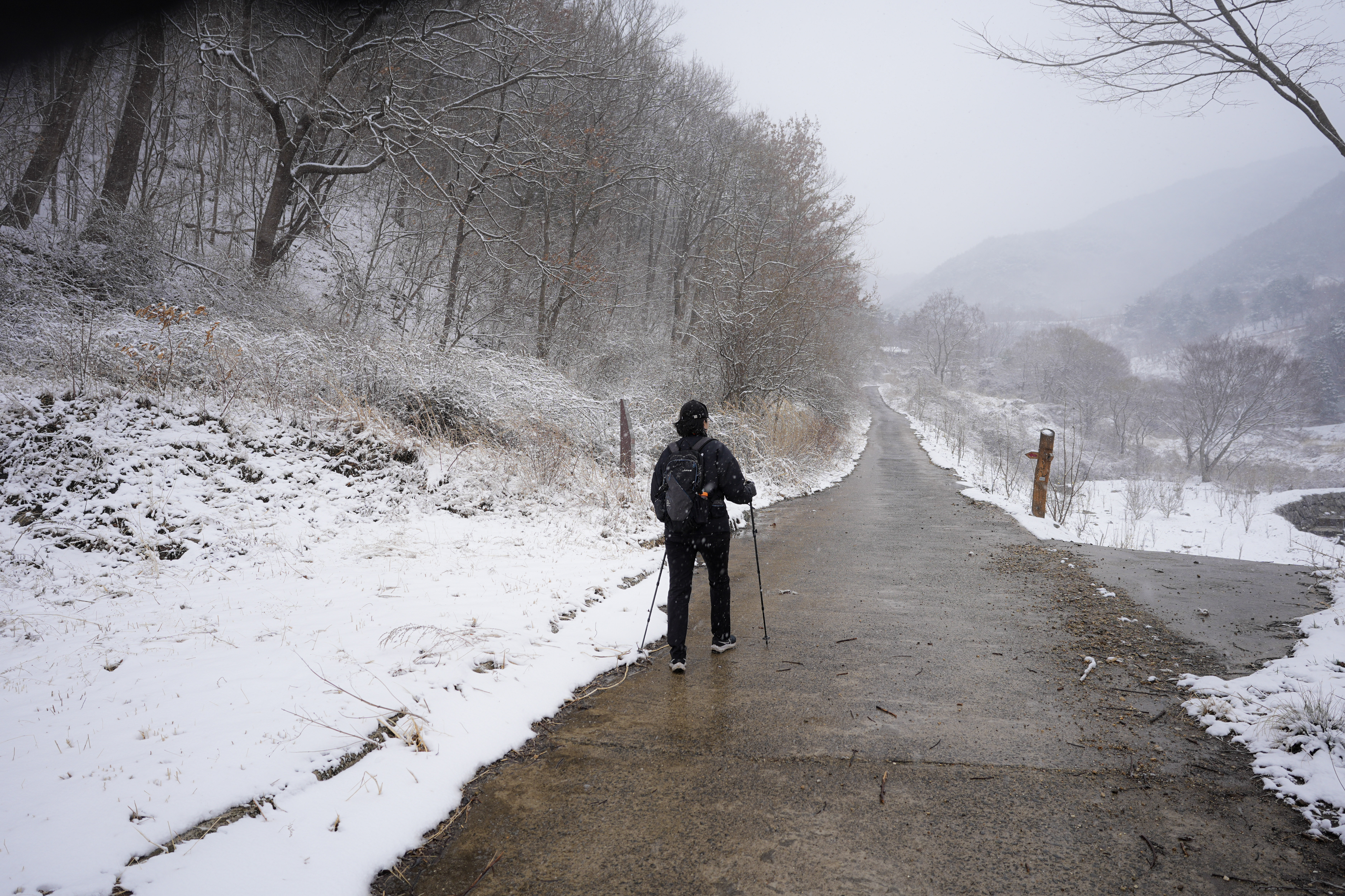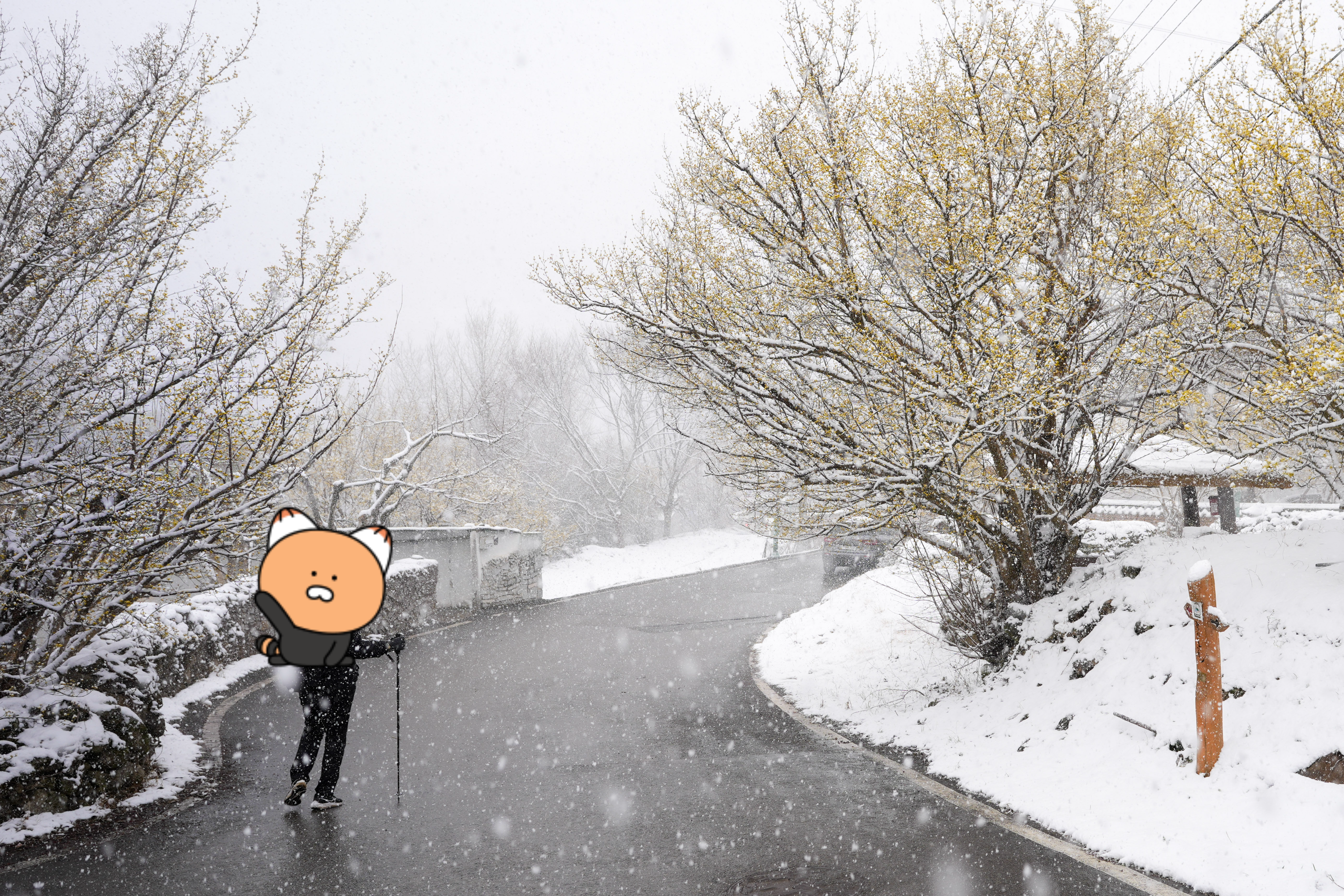 이 날은 눈이 많이 오긴 했으나 진짜 너무 위험한 상황은 아니라서 정해진 길로 갔습니다