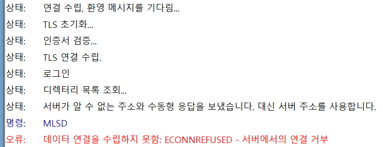 밑에 사진 보면 FTPS가 활성화 되어있어서 그렇다.