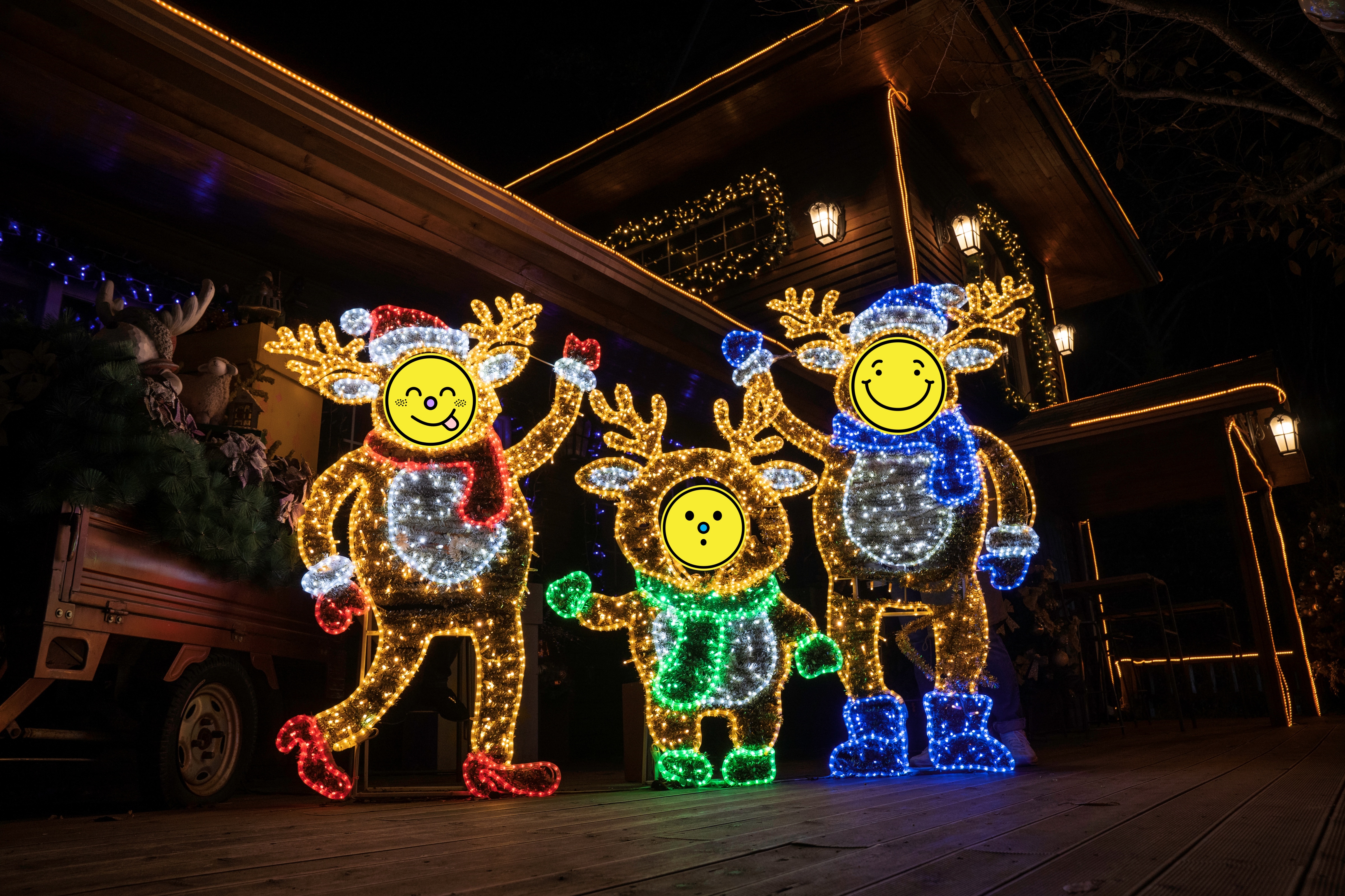 산타마을은 캐롤이 나오는데 캐롤 박자에 맞게 LED가 켜졌다 꺼졌다를 반복합니다